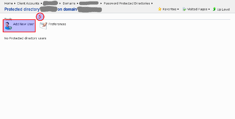 Nun wird man auf eine weitere Seite weitergeleitet. Hier gilt es nun einen neuen Benutzer für dieses Verzeichnis anzulegen. Wie zu vermuten sollte man dazu auf Add New User klicken (5):
