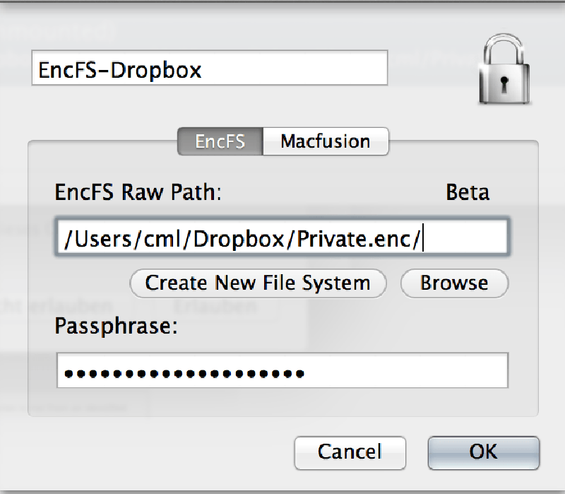 EncFS ist ein Open-Source-Dateisystem, welches komplette Verzeichnisse mittels eines Passworts verschlüsseln und transparent ins Betriebssystem einbinden kann. Zum gegenwärtigen Zeitpunkt gilt das Programm als sicher. Es stammt aus der Unix-Welt und dort ist die Installation und Benutzung auch am einfachsten. Dennoch kann es auch unter Windows, Android und auch Mac OS X benutzt werden – wie man für letzteres vorgehen muss, wird im Folgenden beschrieben.