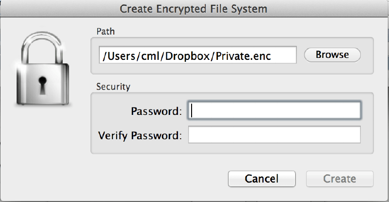 encfs ~/Dropbox/Private.enc/ ~/Private/