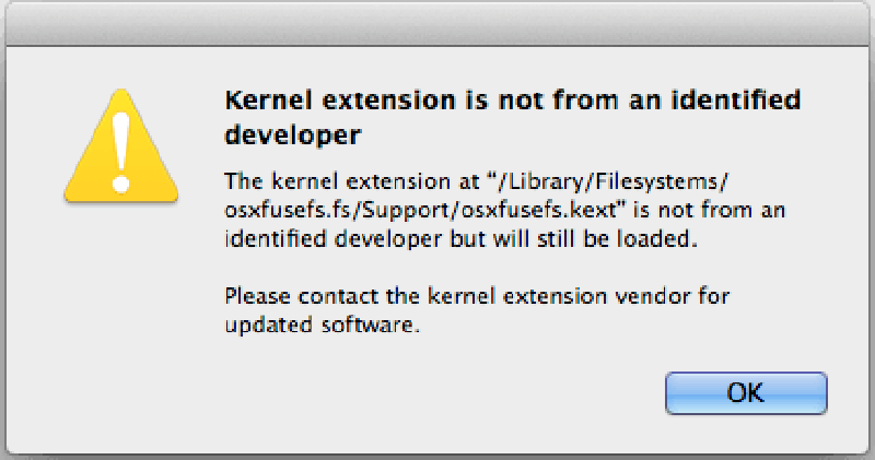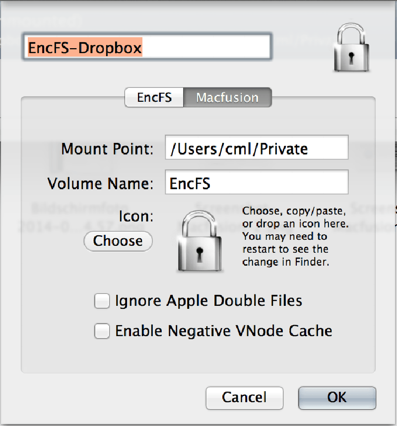 Der Befehl sorgt dafür, dass das verschlüsselte Wurzelverzeichnis .encrypted im Dropboxordner und der Mountpunkt Private im Benutzerverzeichnis erstellt wird. Das Passwort mit dem die Dateien verschlüsselt werden, muss man im Lauf dieses Schritts eingeben. Falls dabei eine Warnung mit dem Text “Kernel extension is not from an identified developer” auftaucht, so bestätigt man diese mit “OK”.